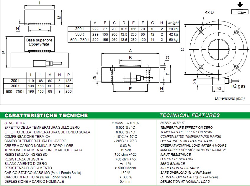 意大利Laumas CBLS-200000kg稱重傳感器中英參數