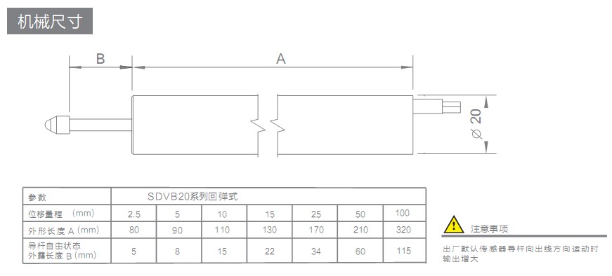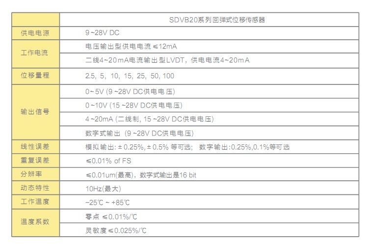屬性:SDVB20位移傳感器,SDVB20直流回彈式位移傳感器